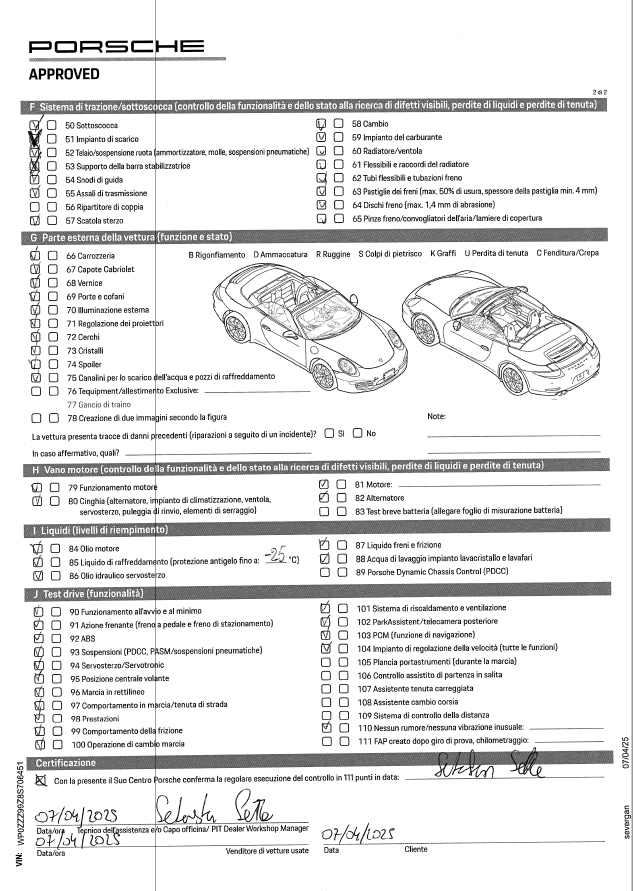 APPROVATI 111 CONTROLLLI ufficiali porsche senza alcun difetto.